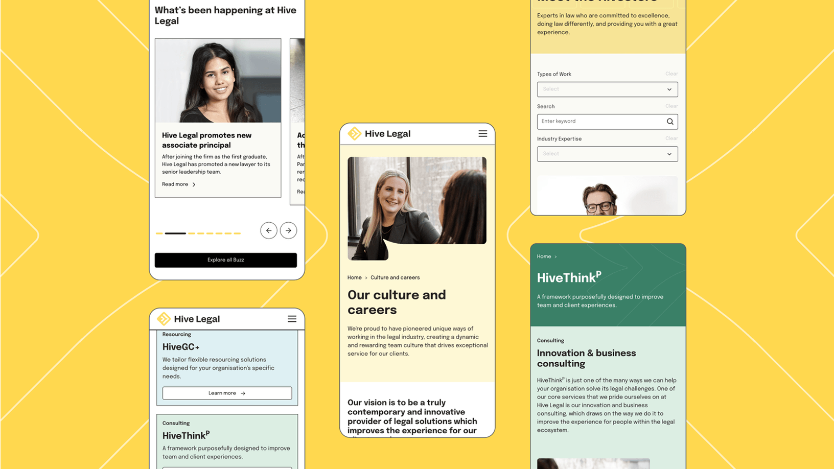 We worked closely with Hive Legal to shape a brand and website that feels considered, confident, and genuinely reflective of how they work. The identity was refined to feel modern and grounded, while the website experience was designed to clearly communicate their services, values, and point of difference in plain language.